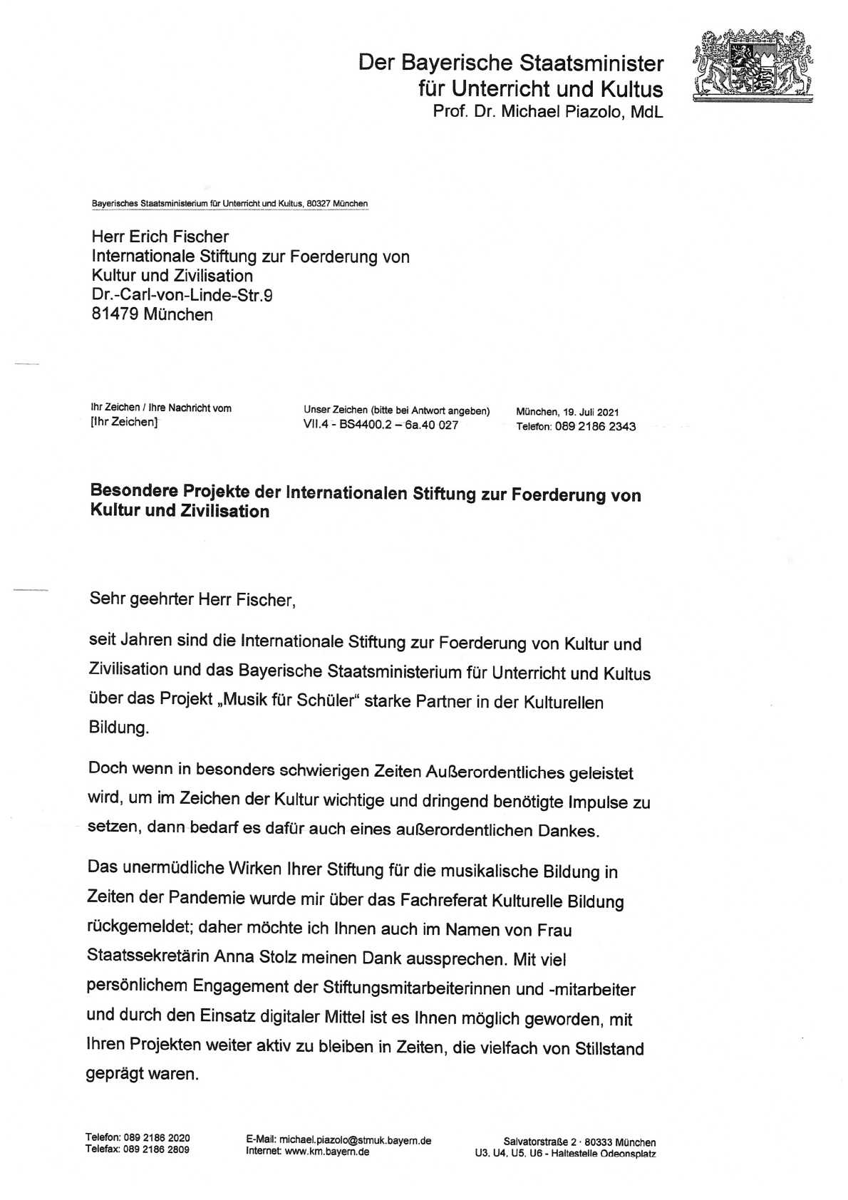Das Bayerische Staatsministerium für Unterricht und Kultus | 19.07.2021