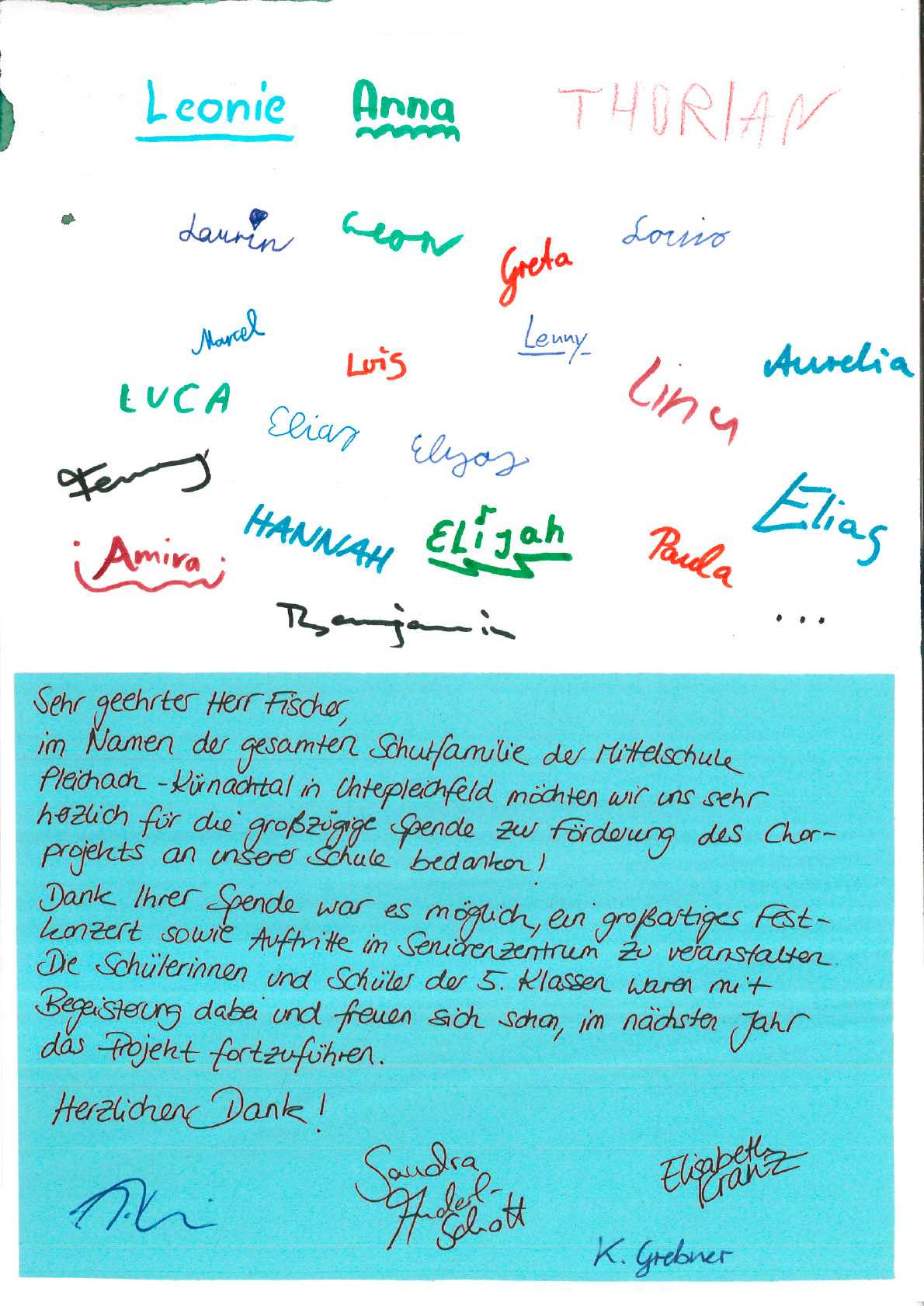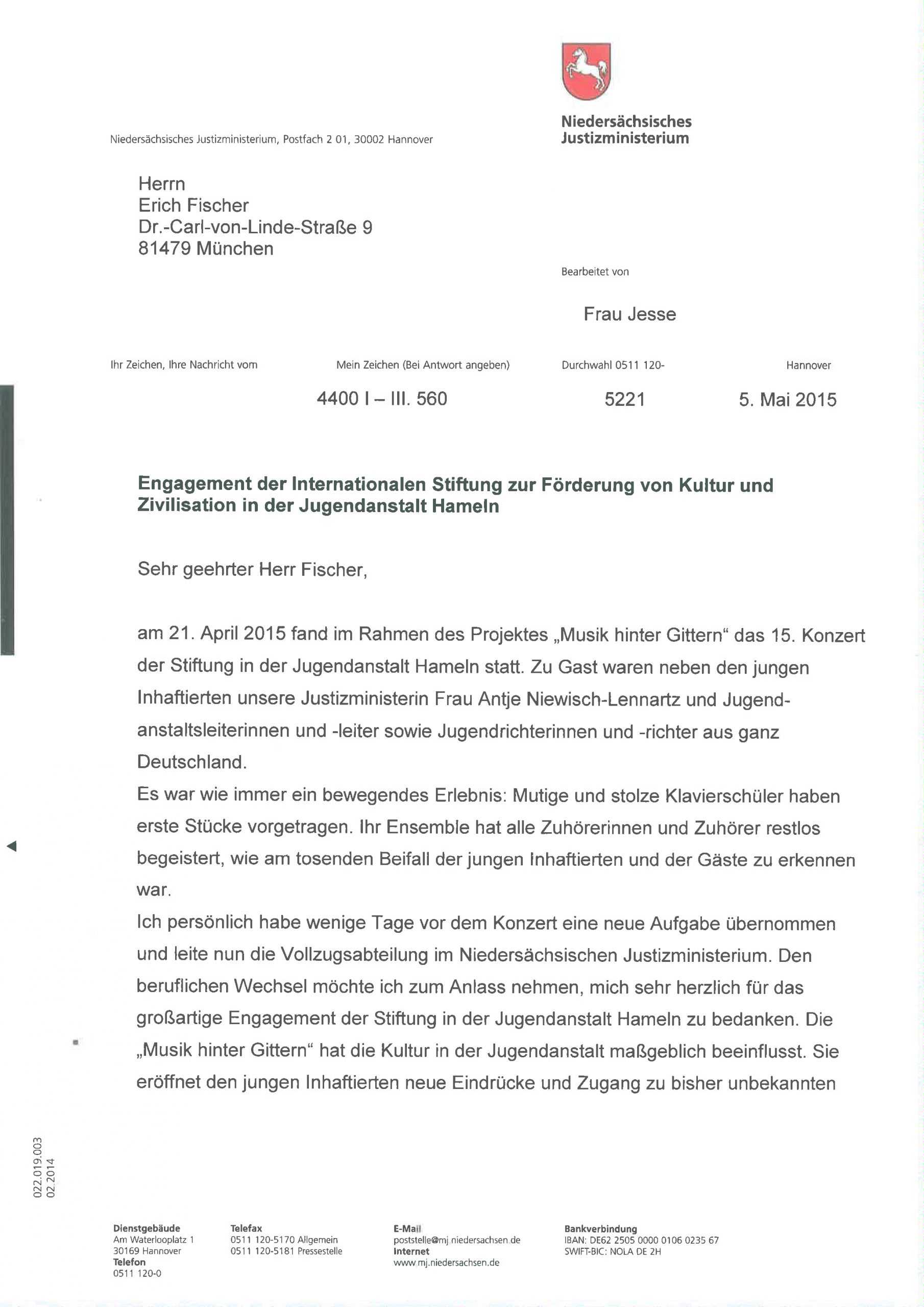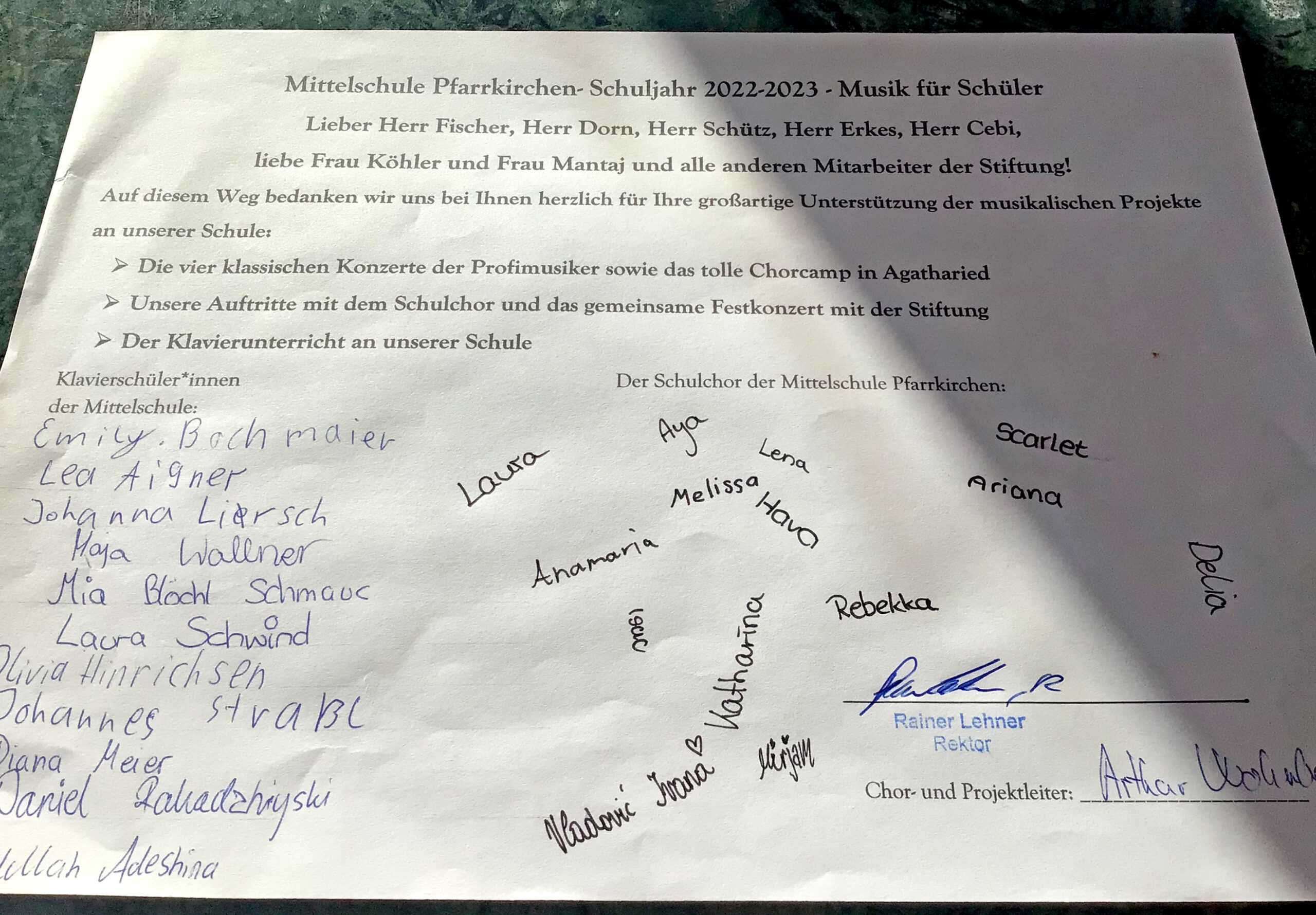 Dankesschreiben Musik am Nachmittag