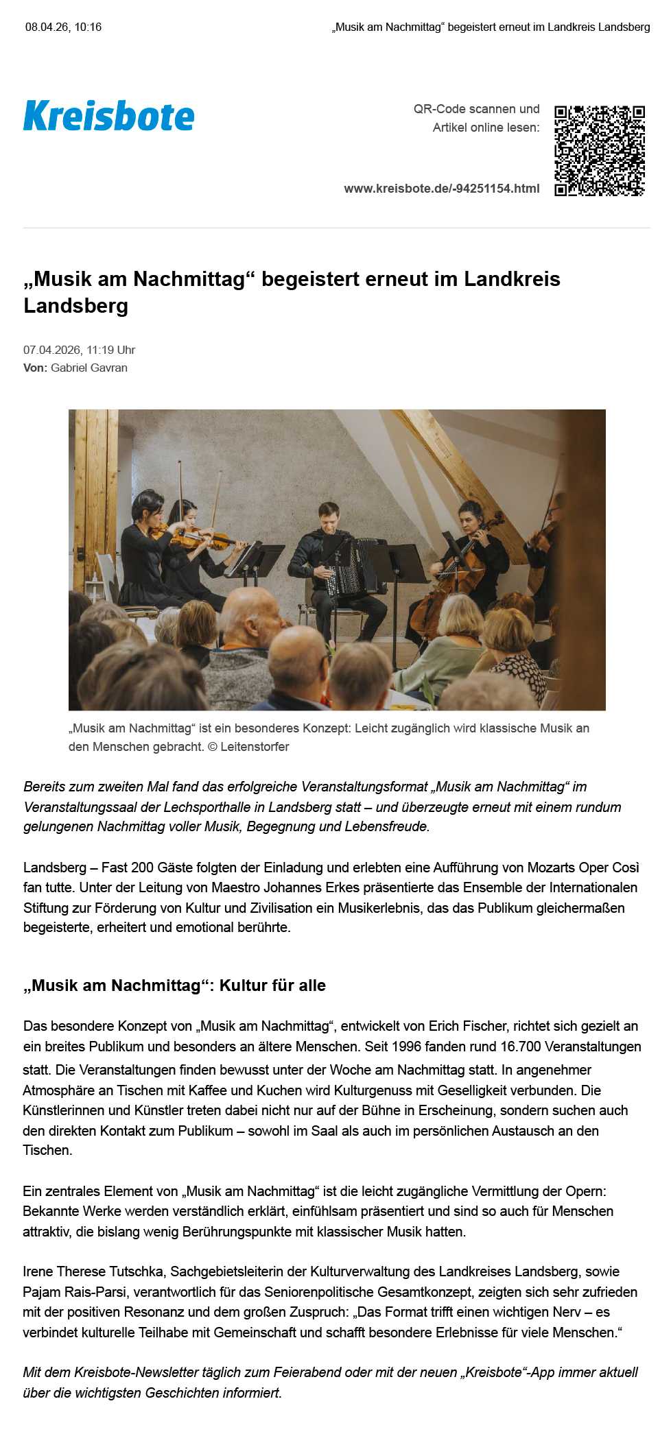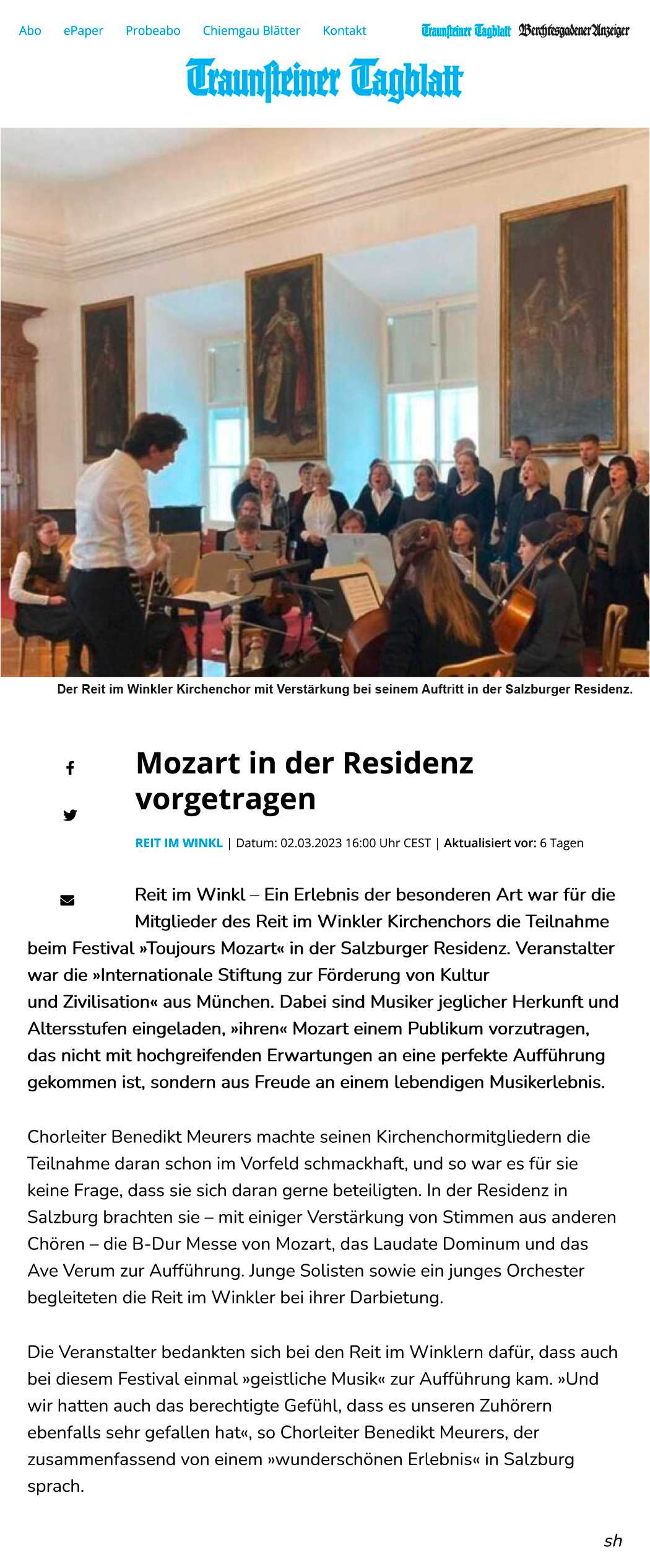 Musik für Schüler | “Zwei Günzburg Mittelschüler treten als Gesangsduo in Salzburg auf” | Augsburger Allgemeine vom 25. März 2023