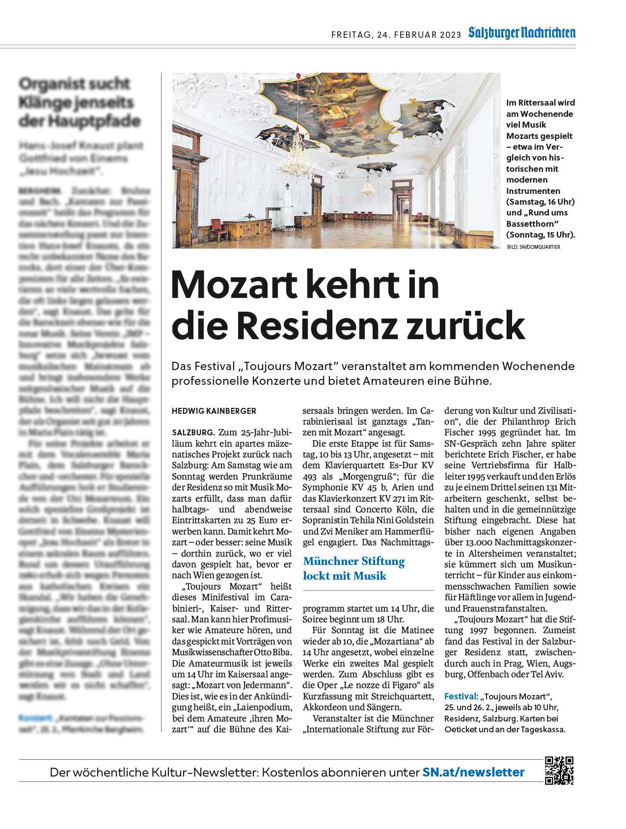 “TOUJOURS MOZART” in Salzburg | 25. & 26. Februar 2023 | Alte fürsterzbischöfliche Residenz