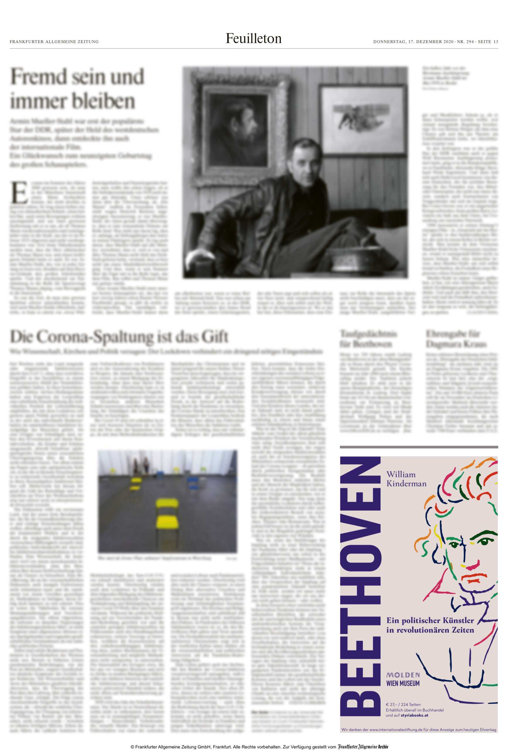BEETHOVEN von William Kinderman | Anzeige FAZ 17.12.2020
