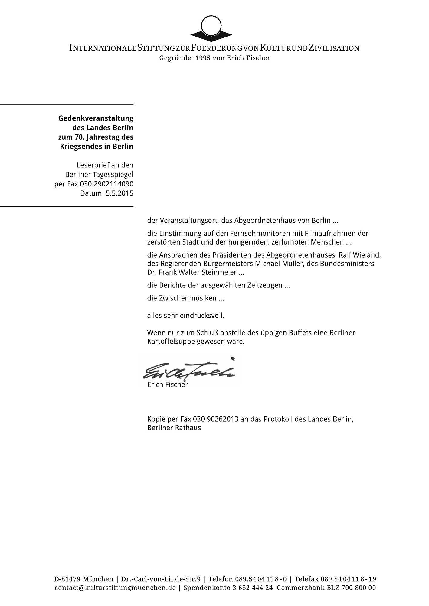 Ein Appell an die Vernunft | FAZ 20.5.2016 | Erich Fischer