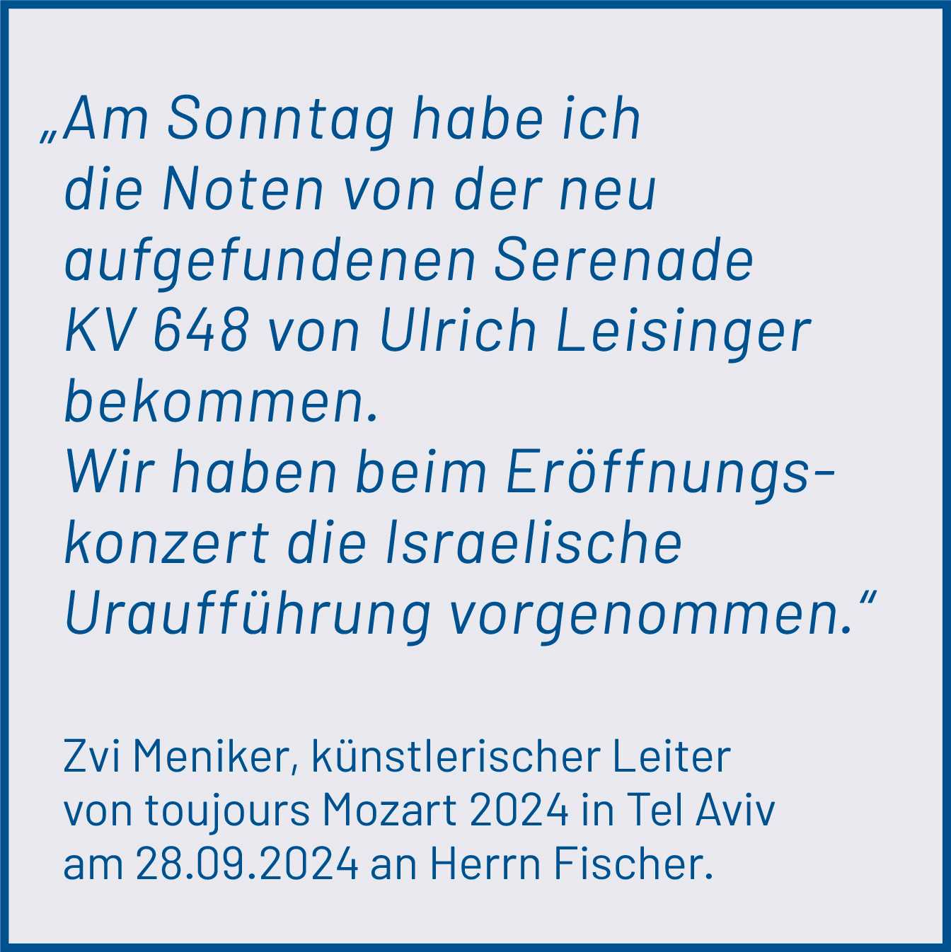 toujours Mozart 26. – 28. September 2024 | Tel Aviv