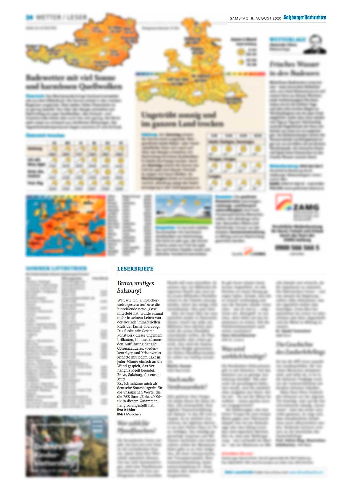 “Bravo, mutiges Salzburg” | Salzburger Nachrichten | Leserbrief von Eva Köhler vom 3.8.2020, veröffentlicht am 8.8.2020