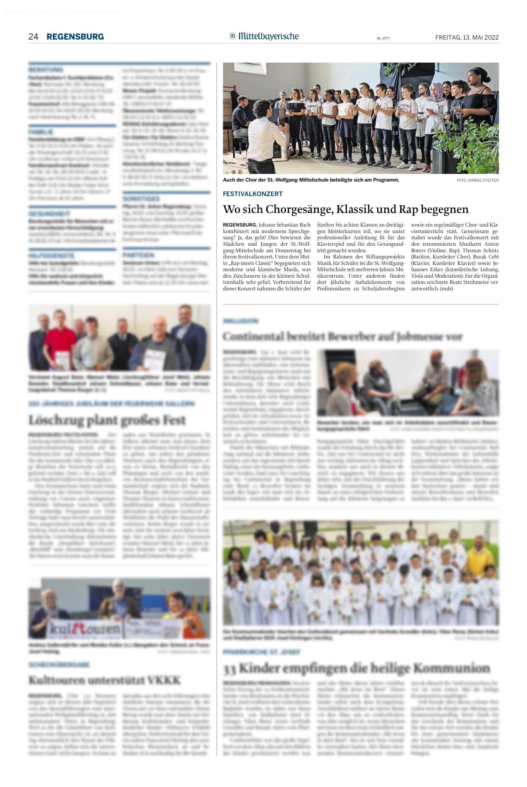 Festivalkonzert “Wo sich Chorgesänge, Klassik und Rap begegnen” | Mittelbayerische, Regensburg | 13.05.2022