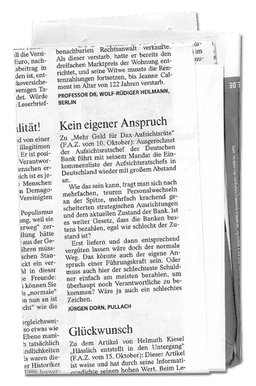 “Kein eigener Anspruch” | Leserbrief Jürgen Dorn, Stiftungsvorstand | FAZ 18.10.2018