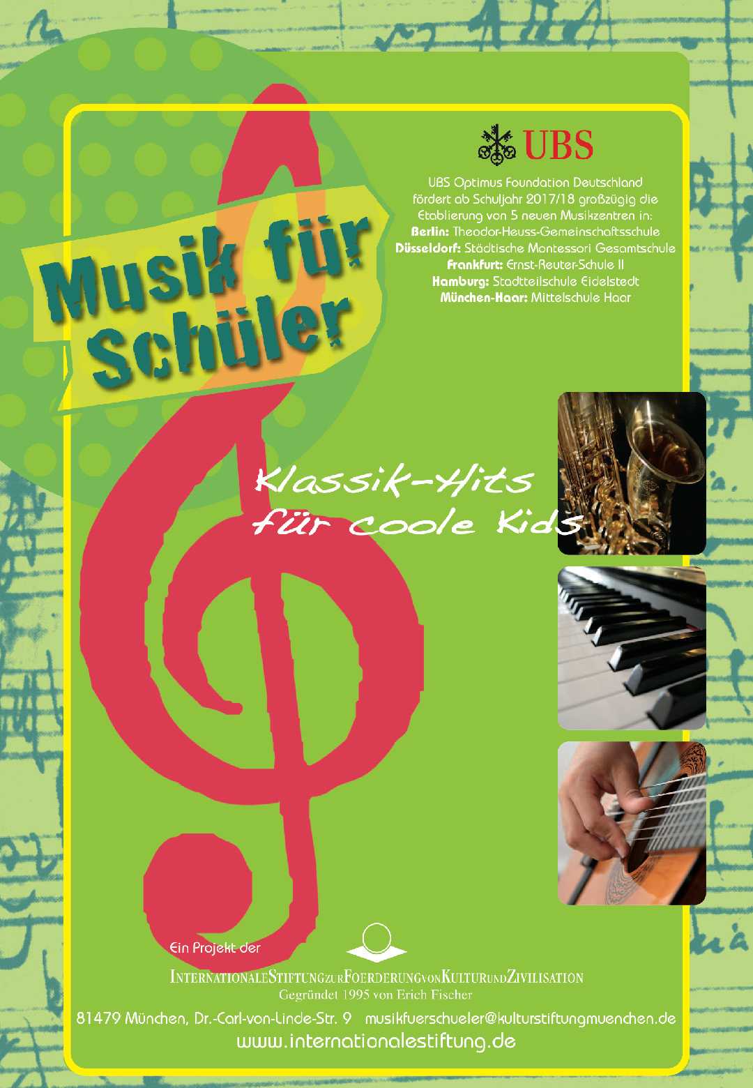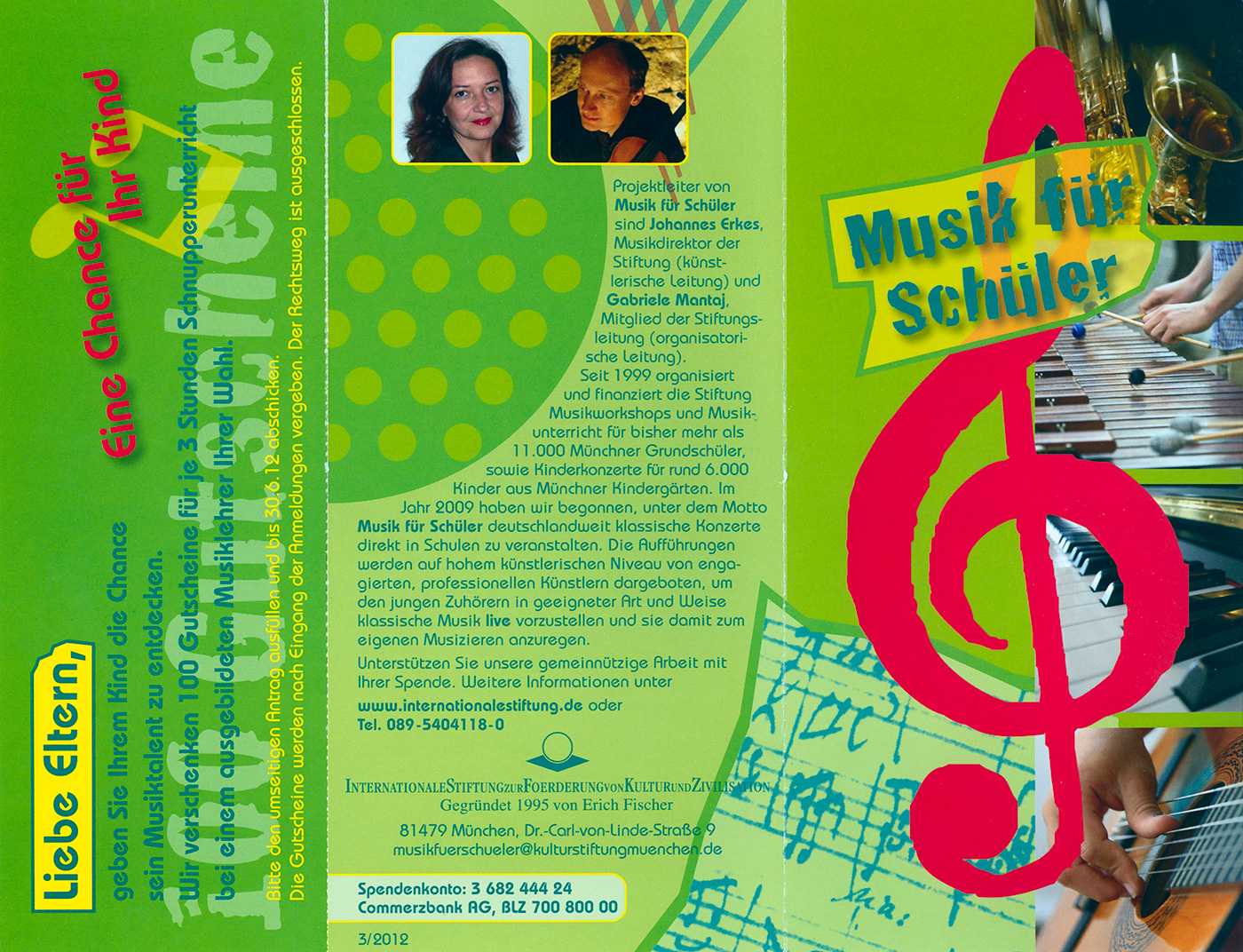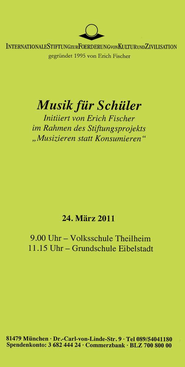 Dieses sehr bedeutende Stiftungsprojekt wurde 1998 von Erich Fischer unter dem Motto "Musizieren statt Konsumieren" in's Leben gerufen, um insbesondere Schülern aus sozial benachteiligten Familien erste Begegnungen mit klassischer Musik zu ermöglichen.