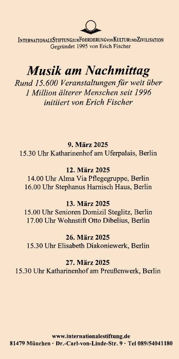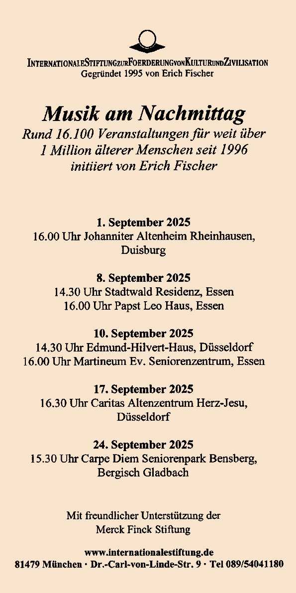 Programmbeispiele 2025 | Archiv | Konzerte in Altenheimen