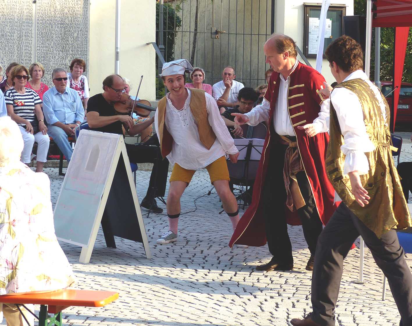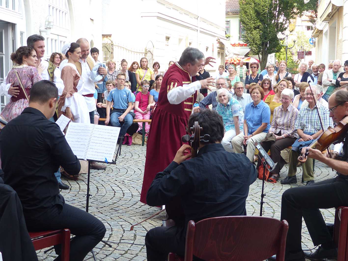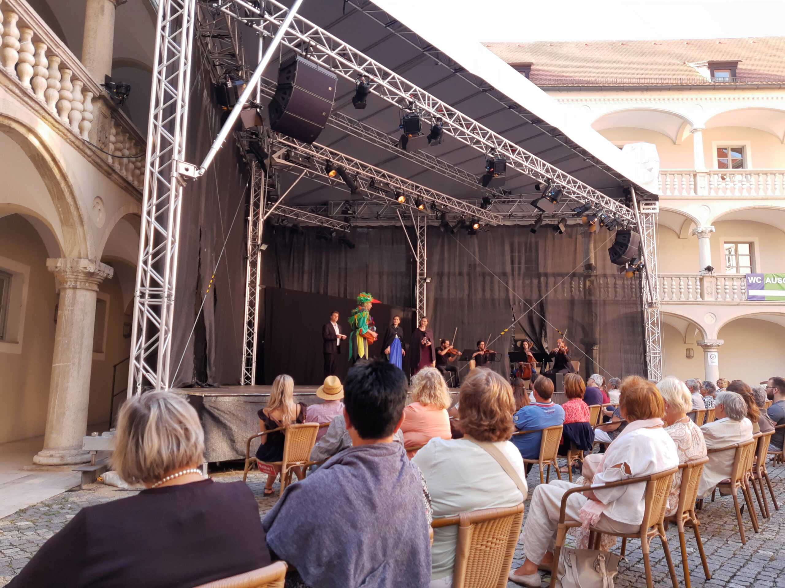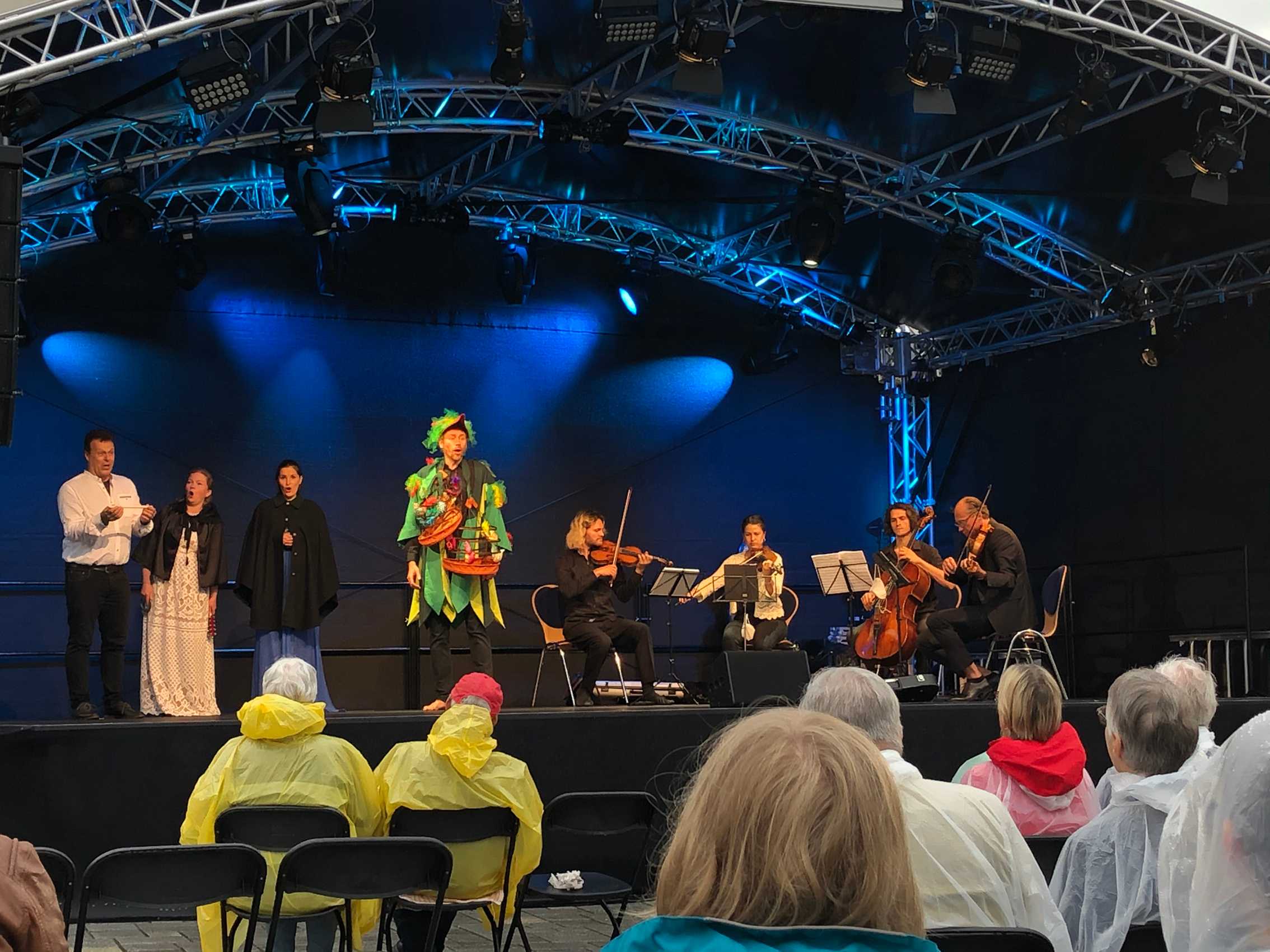 Es ist natürlich nicht zu vergleichen mit einer Aufführung in einem Saal und um ehrlich zu sein hatte ich manchmal Probleme, mich auf das Geschen zu konzentrieren; die Flugzeuge, hupende E-Scooter, tobende Kinder, bellende Hunde und … der Kirchturm, der zwei mal, zur vollen Stunde, alles gegeben hat - und zwar mit Erfolg - die Musik und den Gesang auf dem Platz zu übertönen 😁