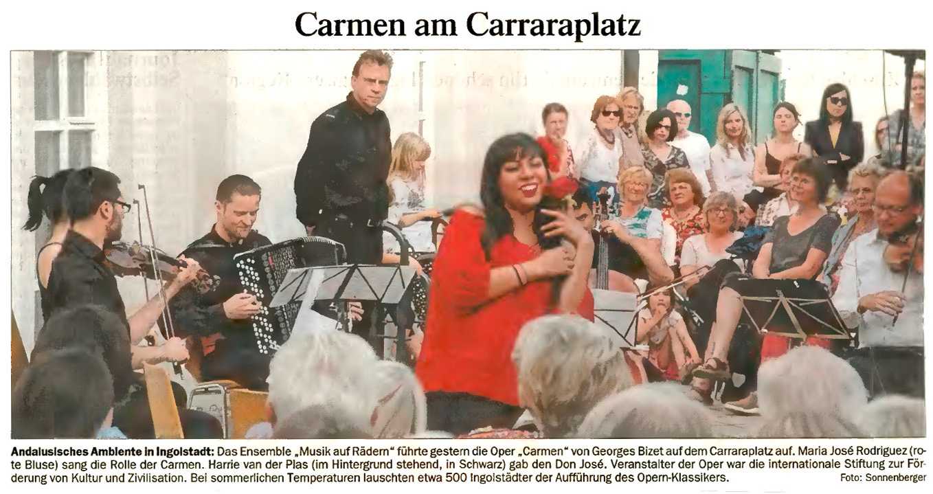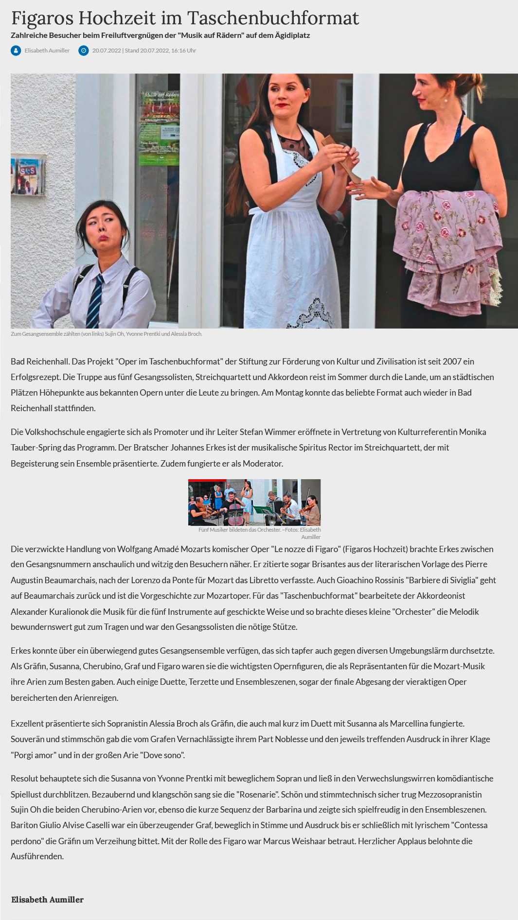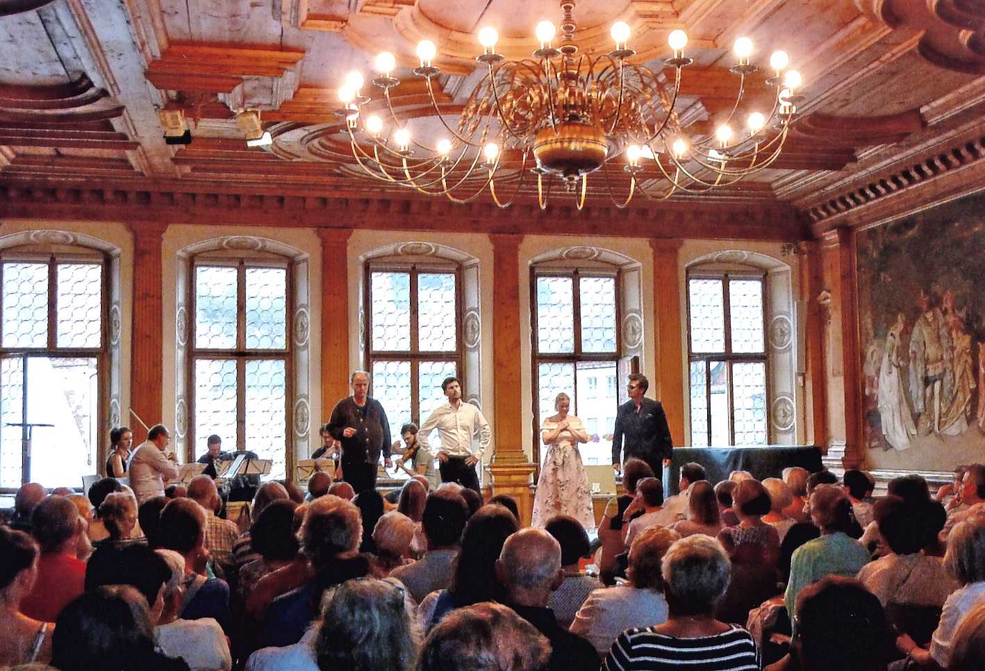 Es ist natürlich nicht zu vergleichen mit einer Aufführung in einem Saal und um ehrlich zu sein hatte ich manchmal Probleme, mich auf das Geschen zu konzentrieren; die Flugzeuge, hupende E-Scooter, tobende Kinder, bellende Hunde und … der Kirchturm, der zwei mal, zur vollen Stunde, alles gegeben hat - und zwar mit Erfolg - die Musik und den Gesang auf dem Platz zu übertönen 😁