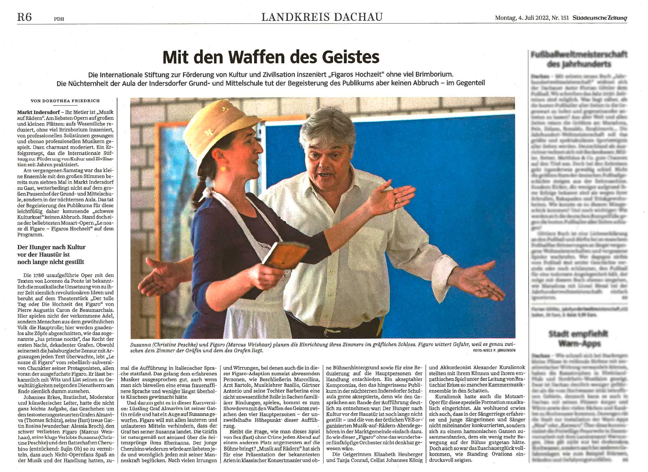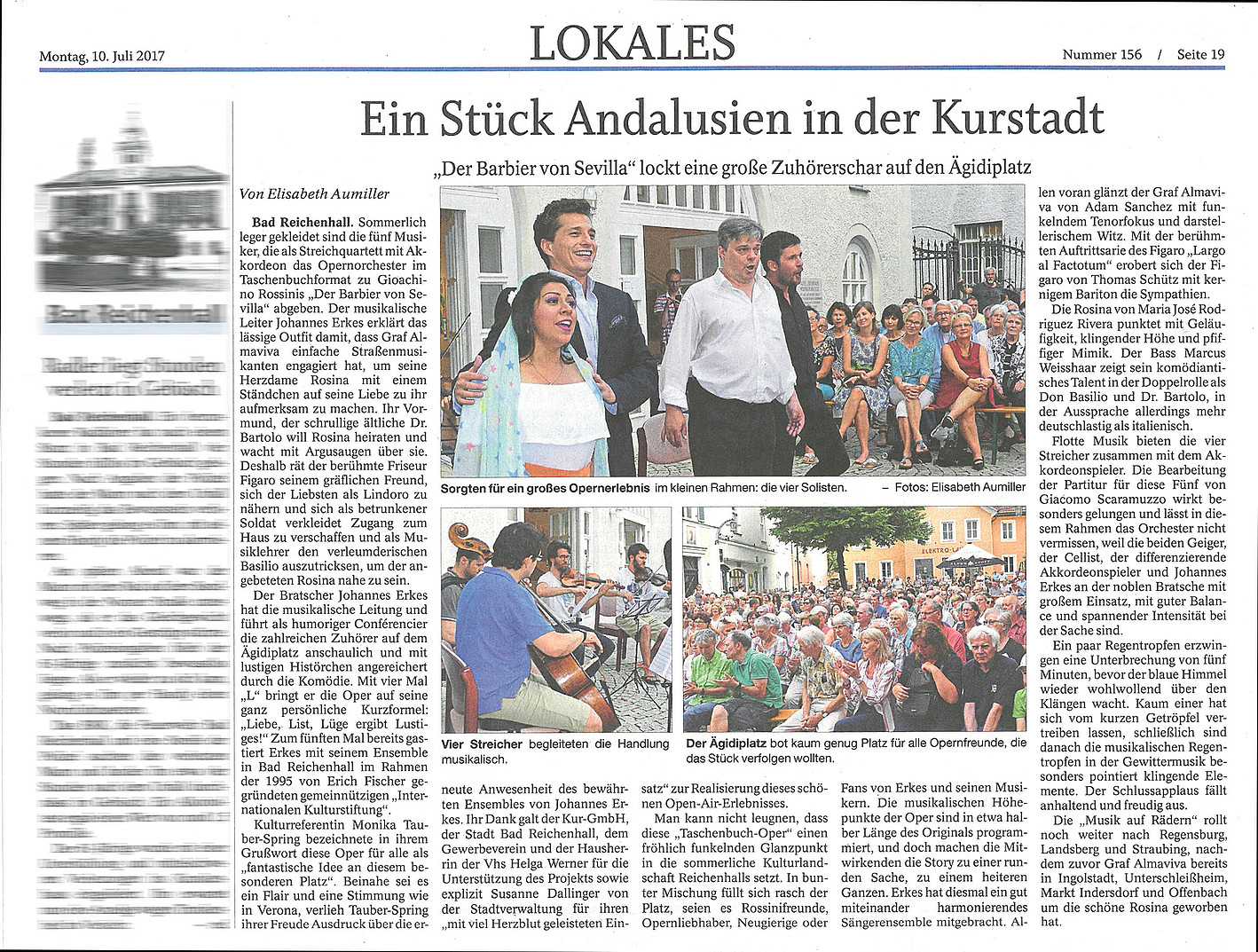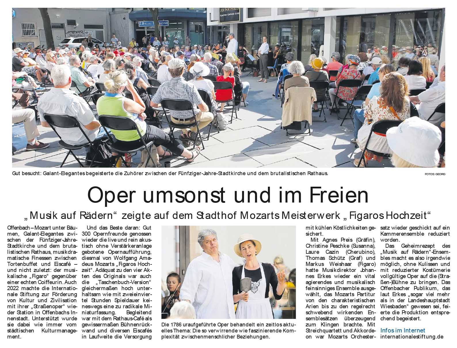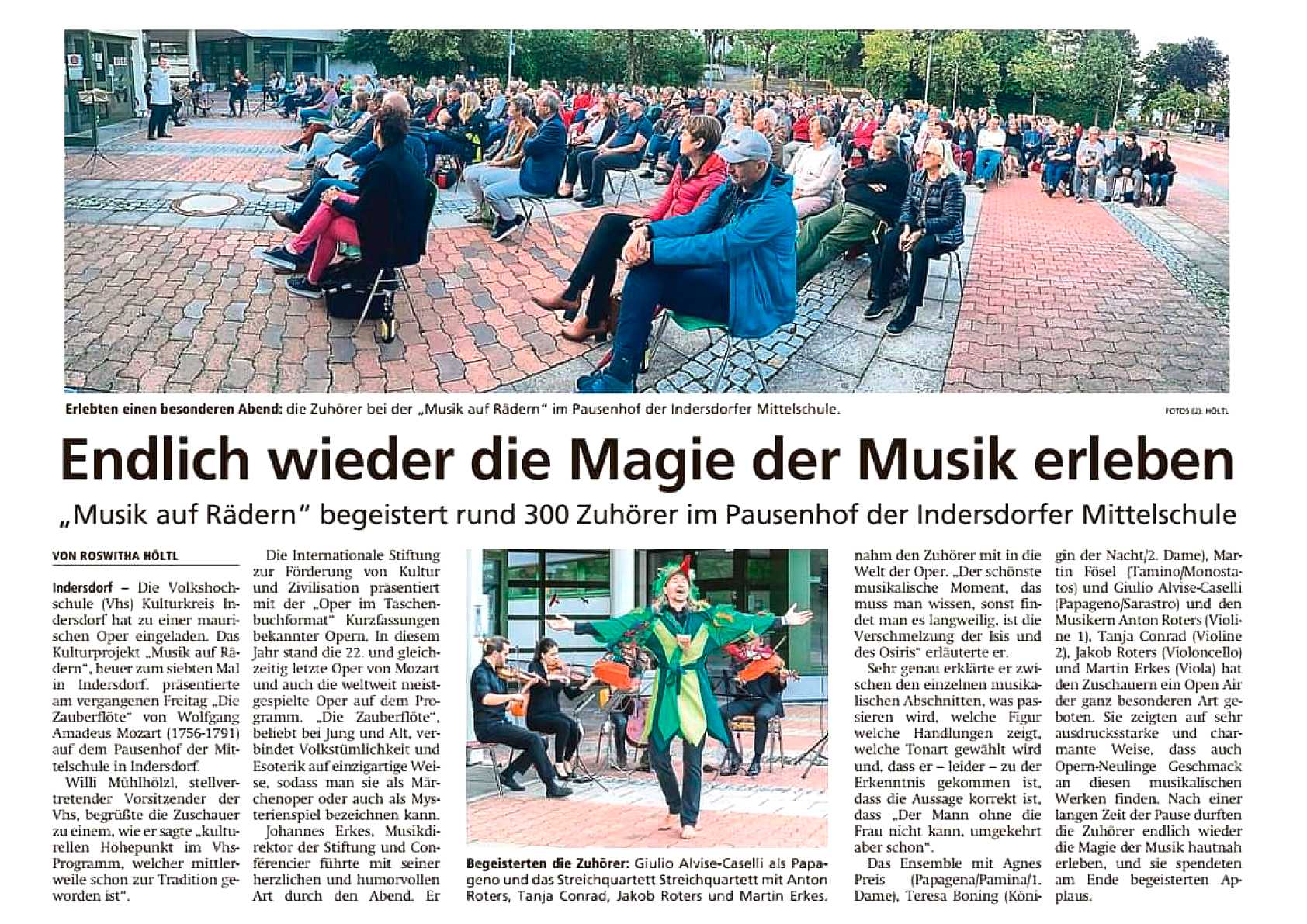 Es ist natürlich nicht zu vergleichen mit einer Aufführung in einem Saal und um ehrlich zu sein hatte ich manchmal Probleme, mich auf das Geschen zu konzentrieren; die Flugzeuge, hupende E-Scooter, tobende Kinder, bellende Hunde und … der Kirchturm, der zwei mal, zur vollen Stunde, alles gegeben hat - und zwar mit Erfolg - die Musik und den Gesang auf dem Platz zu übertönen 😁