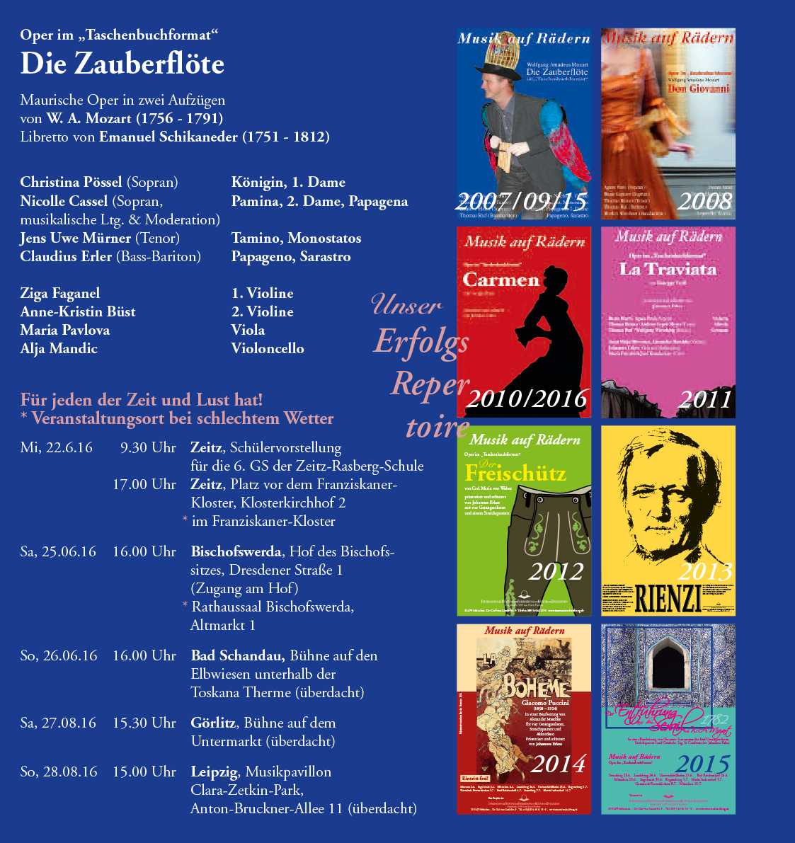 Sommer-Tournee 2019 | Musik auf Rädern DON GIOVANNI von W.A. Mozart | 25.06 - 11.07.2019 Oper im "Taschenbuchformat"