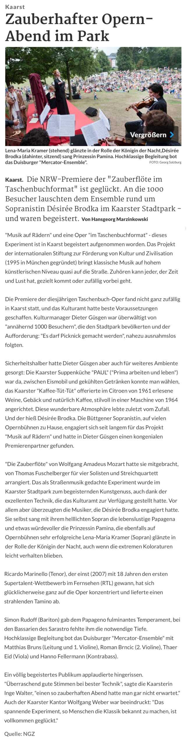 "Superangenehme Stimmung und eine wunderbare Aufführung" | Premiere 25.06.2019 |