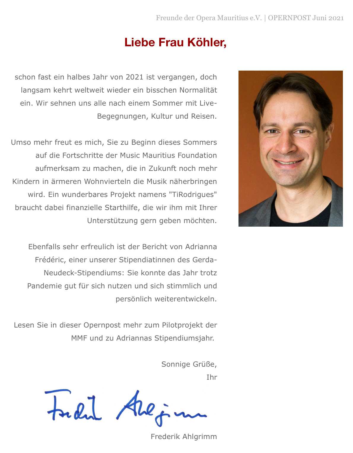 Wir haben die Opéra de l'Île Maurice zweimal gefördert: in den Jahren 2015 und 2018
